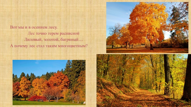 Правильно, осень; Я приглашаю вас прогуляться по осеннему лесу.