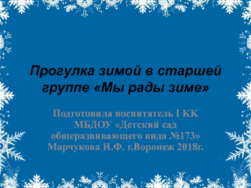 МБДОУ «Детский сад общеразвивающего вида №173» Марчукова И.Ф. г.Воронеж 2018г.