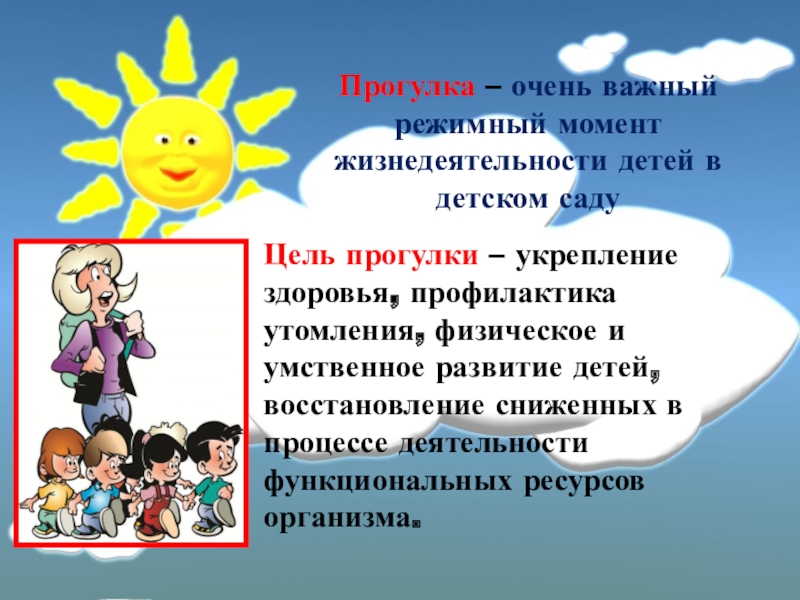 Прогулка – очень важный режимный момент жизнедеятельности детей в детском саду