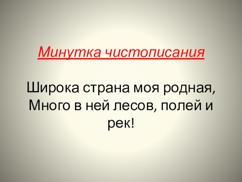 Минутка чистописания Широка страна моя родная, Много в ней лесов, полей и рек!