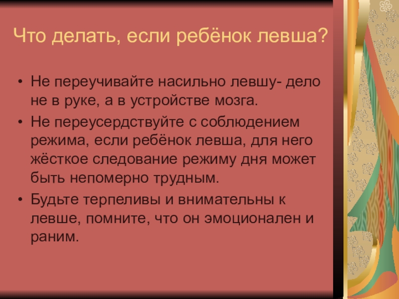 Слайд 4Что делать, если ребёнок левша?
