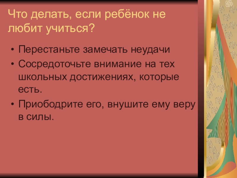 Слайд 6Что делать, если ребёнок не любит учиться?