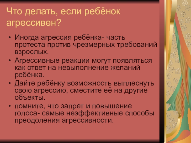 Слайд 3Что делать, если ребёнок агрессивен?
