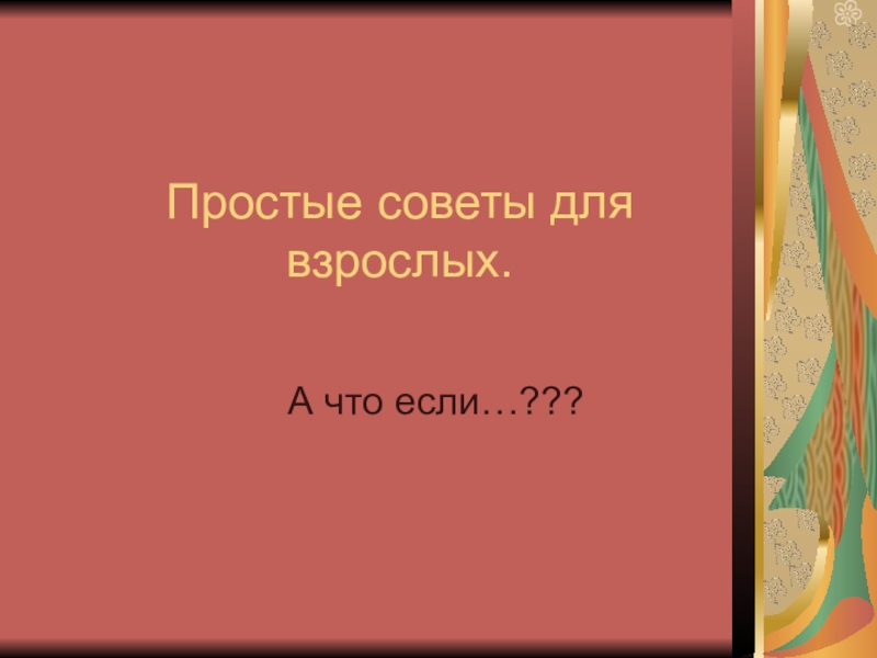 Презентация, доклад на тему Простые советы для взрослых