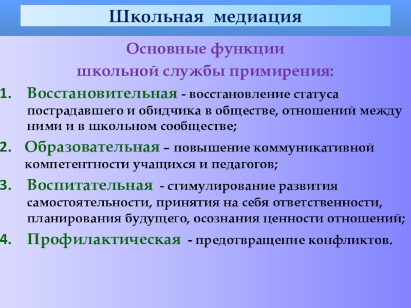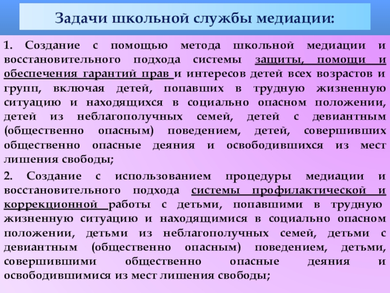 Задачи школьной службы медиации: