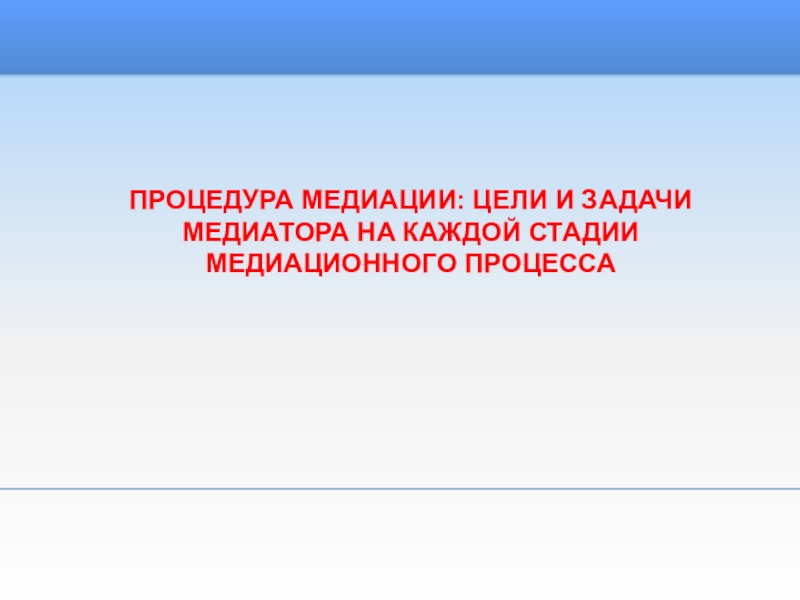 ПРОЦЕДУРА МЕДИАЦИИ: ЦЕЛИ И ЗАДАЧИ МЕДИАТОРА НА КАЖДОЙ СТАДИИ МЕДИАЦИОННОГО