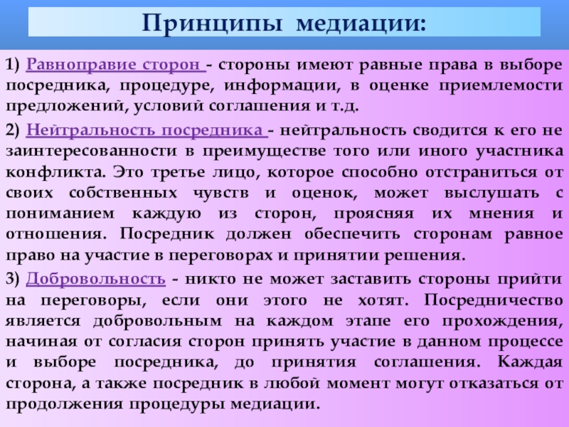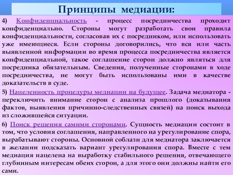 Слайд 20Принципы медиации: