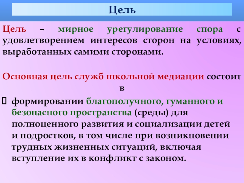 Основная цель служб школьной медиации состоит в