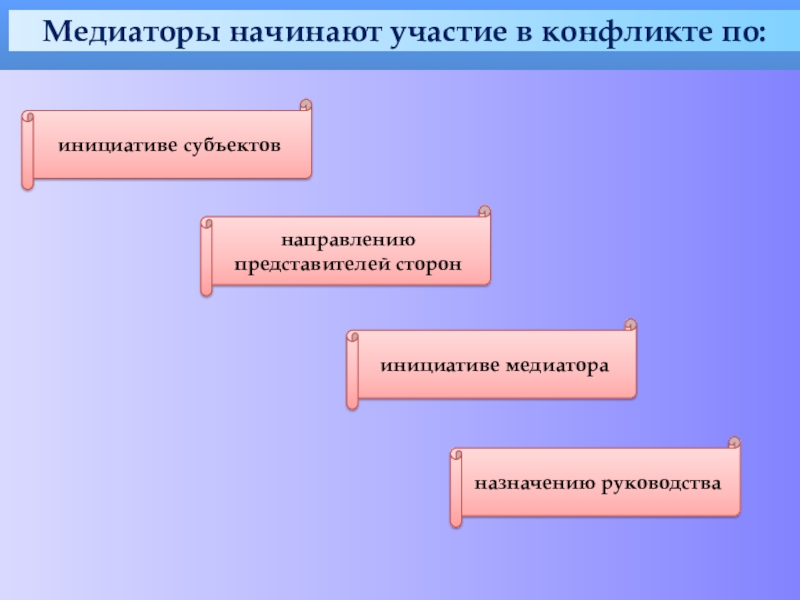Медиаторы начинают участие в конфликте по: