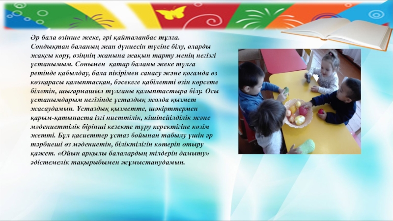 «Әр бала – бір тұлға, оны көре білу, жақсы жолға салу – тірбиешінің міндеті»