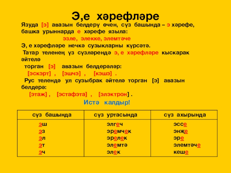 Хәрефне язабыз һәм күрәбез.