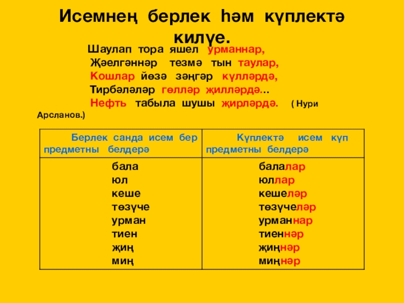 Исемнең берлек һәм күплек