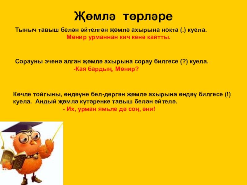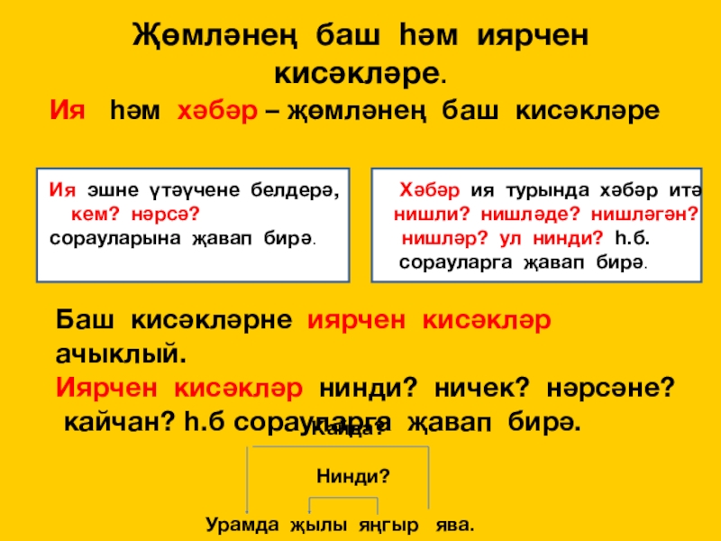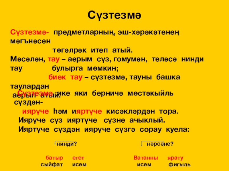 сорауларына җавап бирә. нишләр? ул нинди? һ.б.