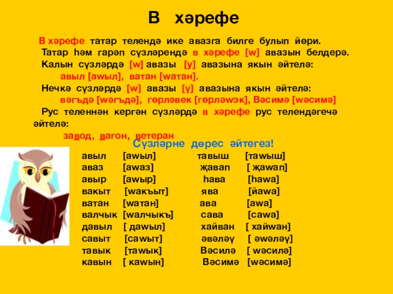 авыл [аwыл] тавыш [таwыш]