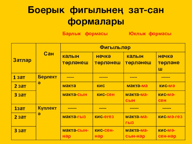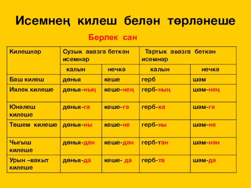 зат – сан белән төрләнеше.