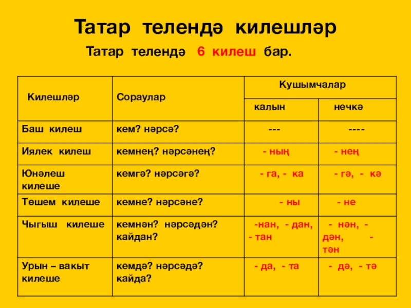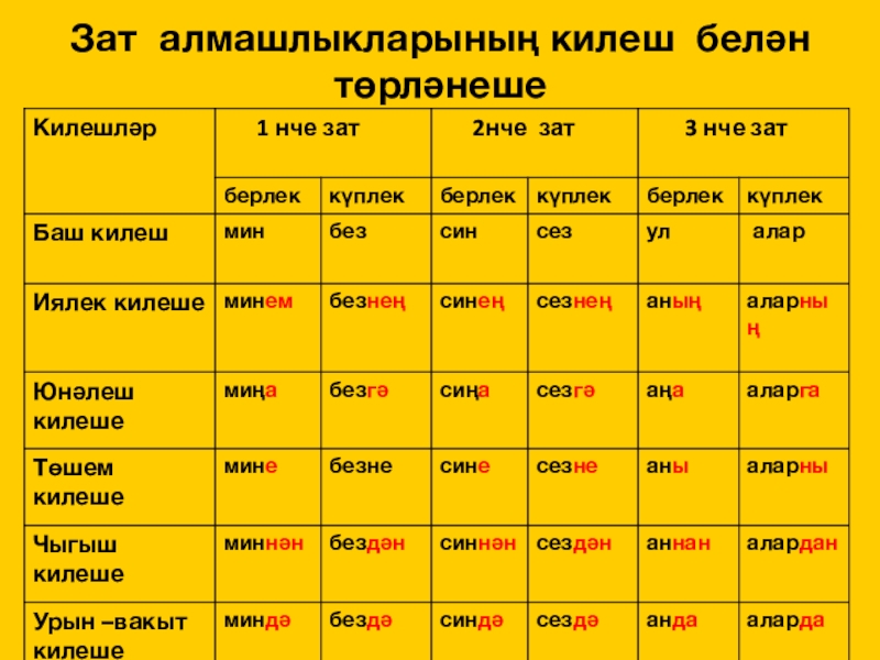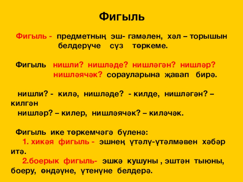 кем? нәрсә? нишли? нишләде? нишләгән?