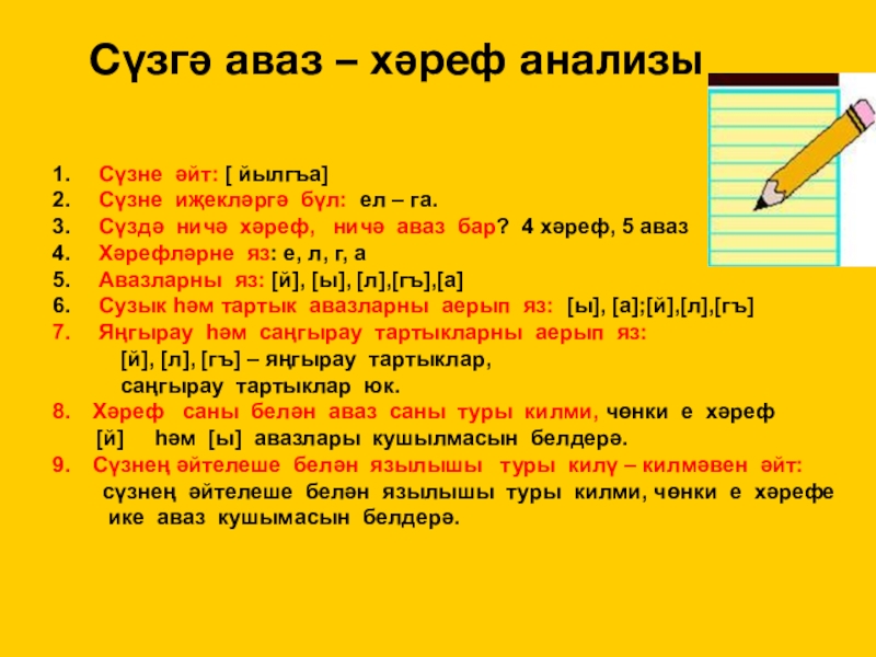 Язуда авазлар хәрефләр белән белдерелә.