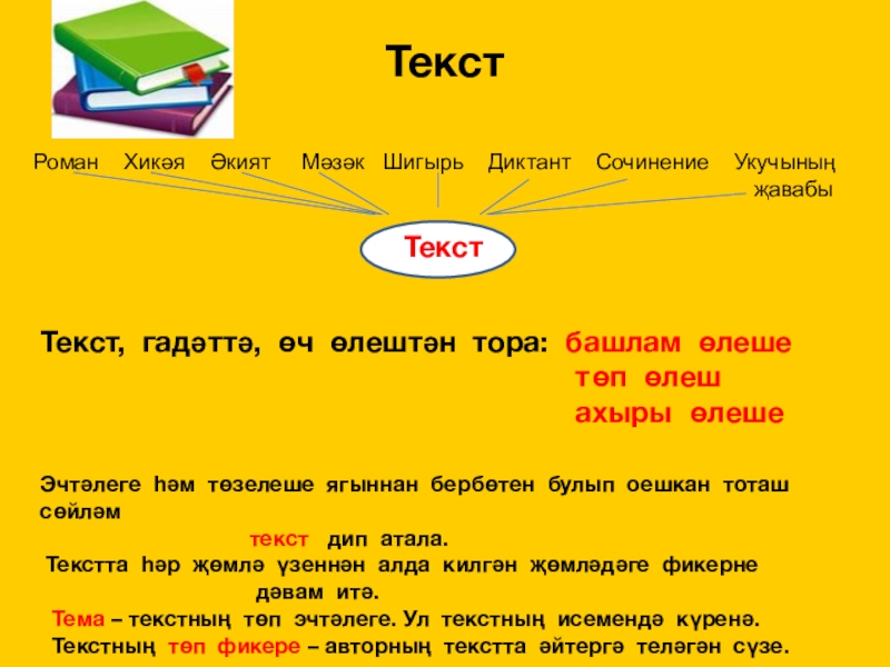 Тема – текстның төп эчтәлеге. Ул текстның исемендә күренә.