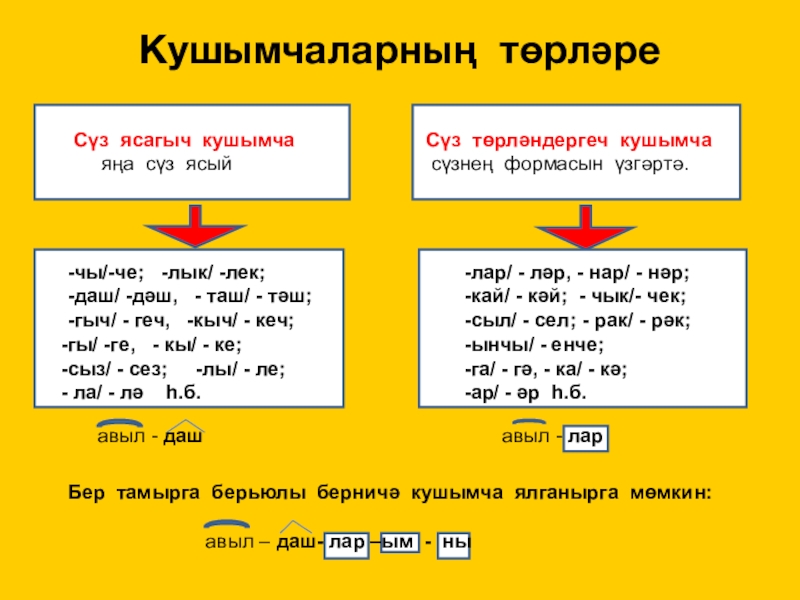 Бер тамырга берьюлы берничә кушымча ялганырга мөмкин: