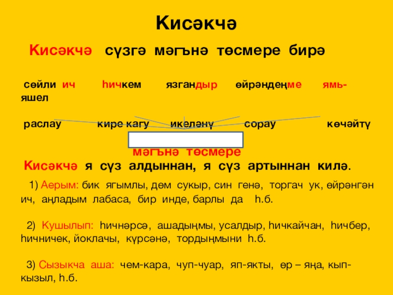 2) Кушылып: һичнәрсә, ашадыңмы, усалдыр, һичкайчан, һичбер,