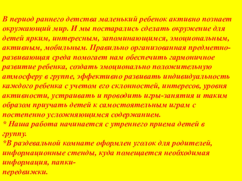 Слайд 4В период раннего детства маленький ребенок активно познает