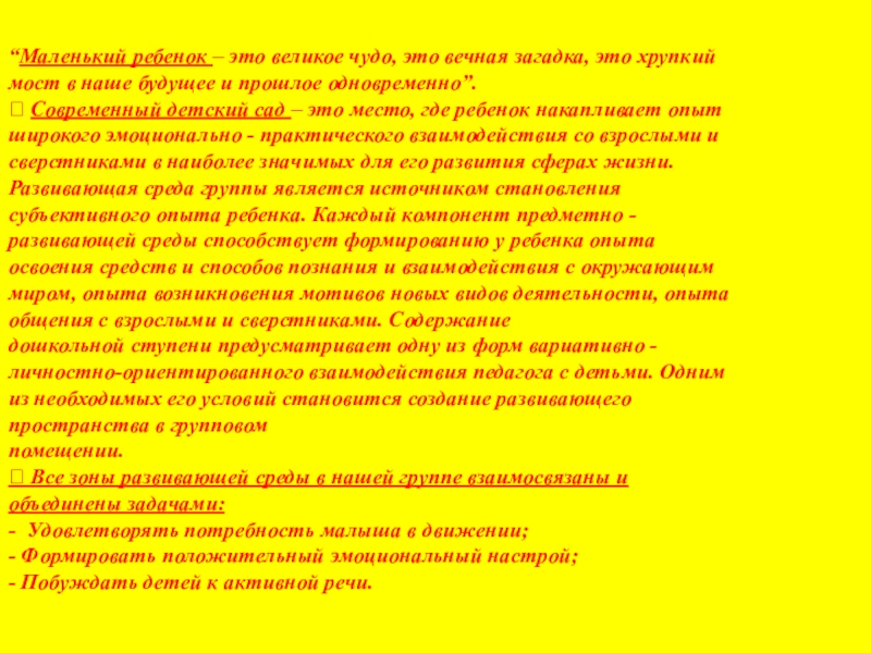 Слайд 3“Маленький ребенок – это великое чудо, это вечная загадка, это хрупкий