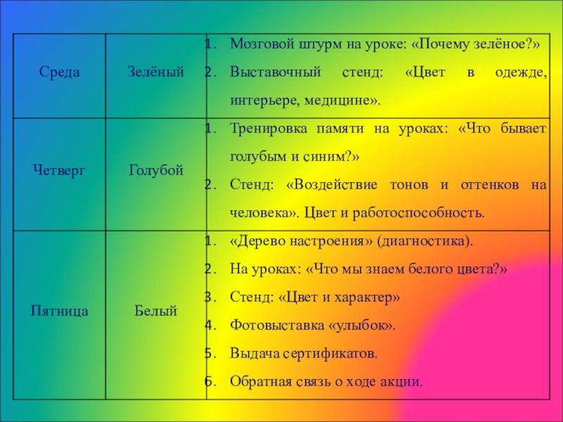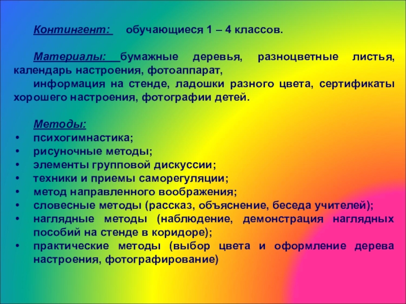 Презентация, доклад на тему Психологическая акция Радуга настроения