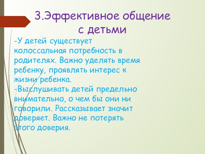 3.Эффективное общение с детьми-У детей существует колоссальная потребность в родителях. Важно уделять время ребенку, проявлять интерес к