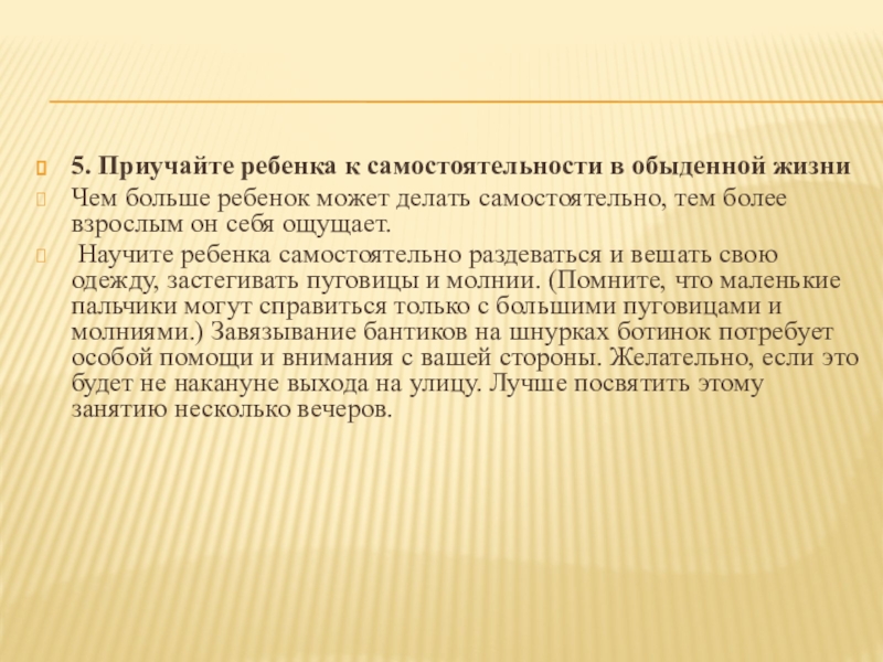 5. Приучайте ребенка к самостоятельности в обыденной жизни