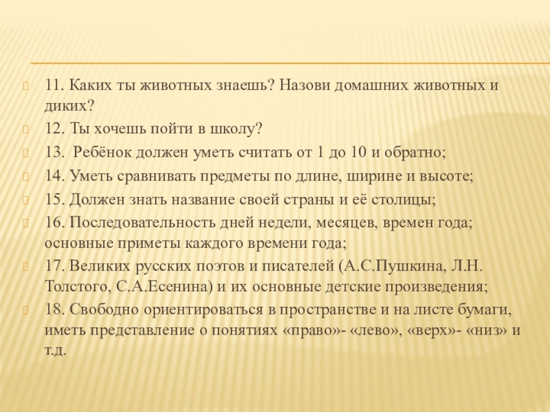13. Ребёнок должен уметь считать от 1 до 10 и обратно;