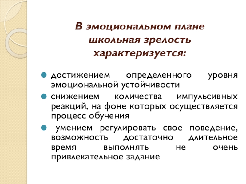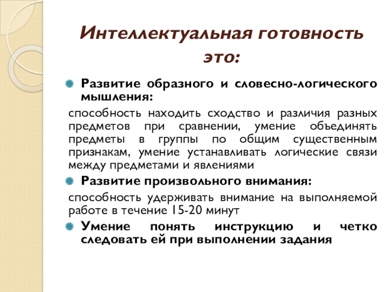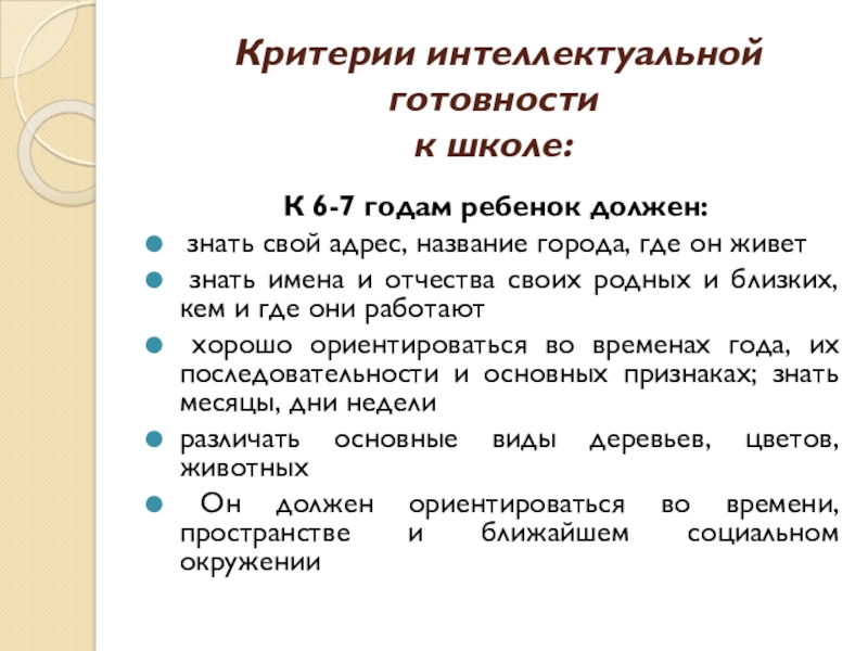 Слайд 7В интеллектуальной сфере характеристиками достижения школьной зрелости являются: