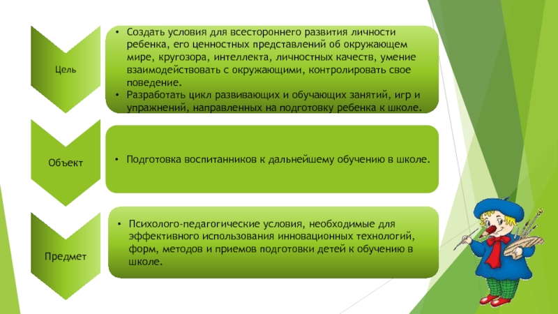Психолого-педагогические условия, необходимые для эффективного использования инновационных технологий, форм, методов и приемов подготовки детей к обучению в школе.