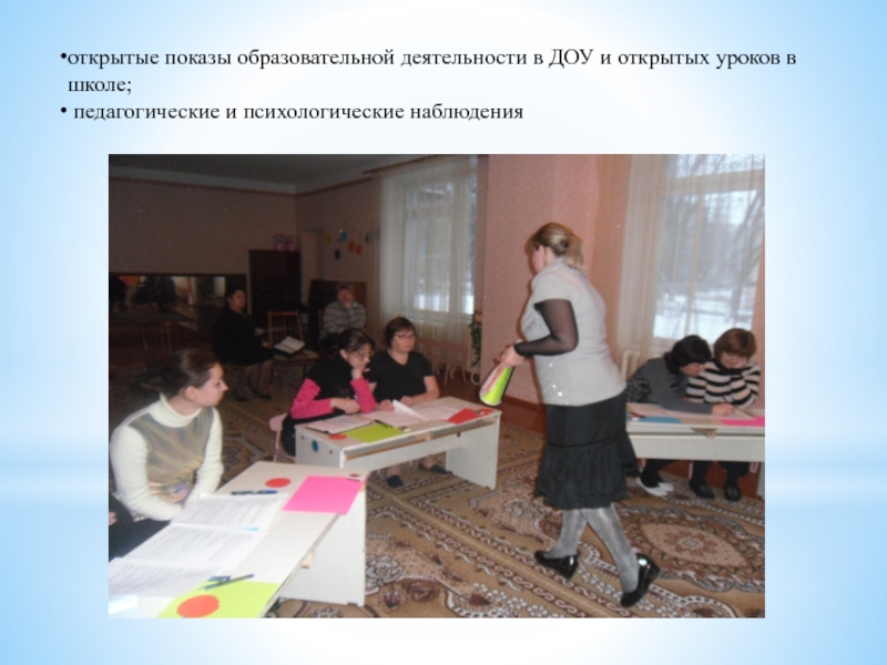 Слайд 15открытые показы образовательной деятельности в ДОУ и открытых уроков в школе;
