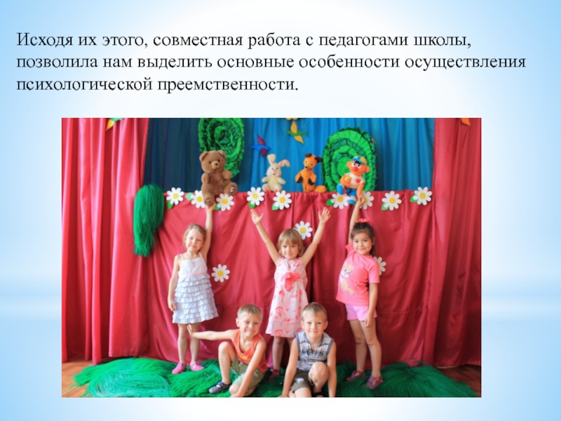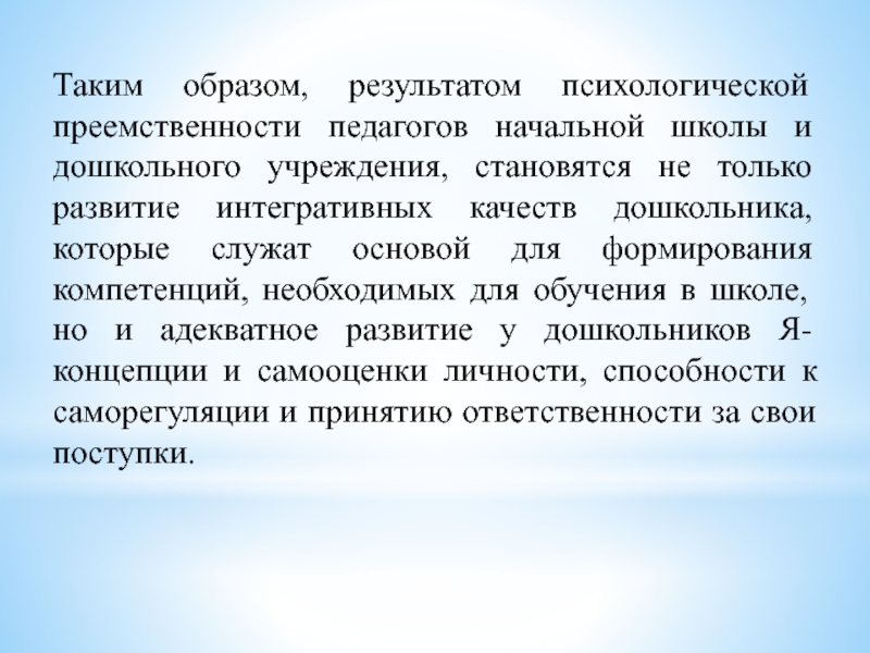 Слайд 19Таким образом, результатом психологической преемственности педагогов начальной школы и дошкольного учреждения,