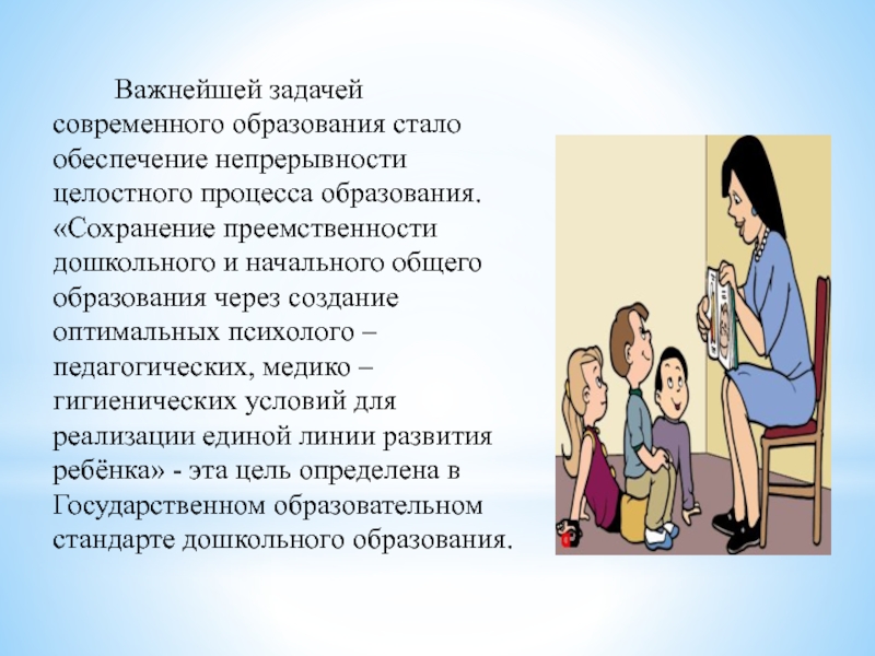 Слайд 2 Важнейшей задачей современного образования стало обеспечение непрерывности