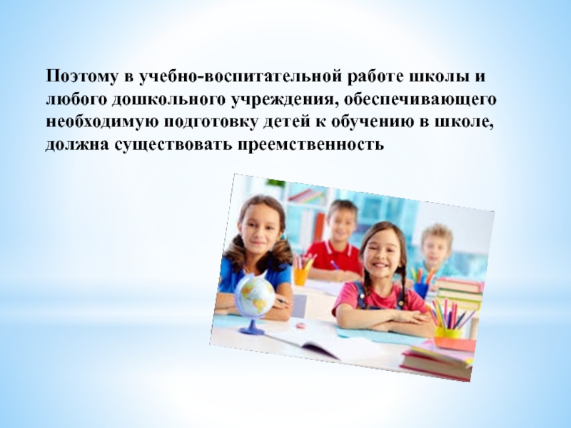 подготовку детей к обучению в школе, должна существовать преемственность