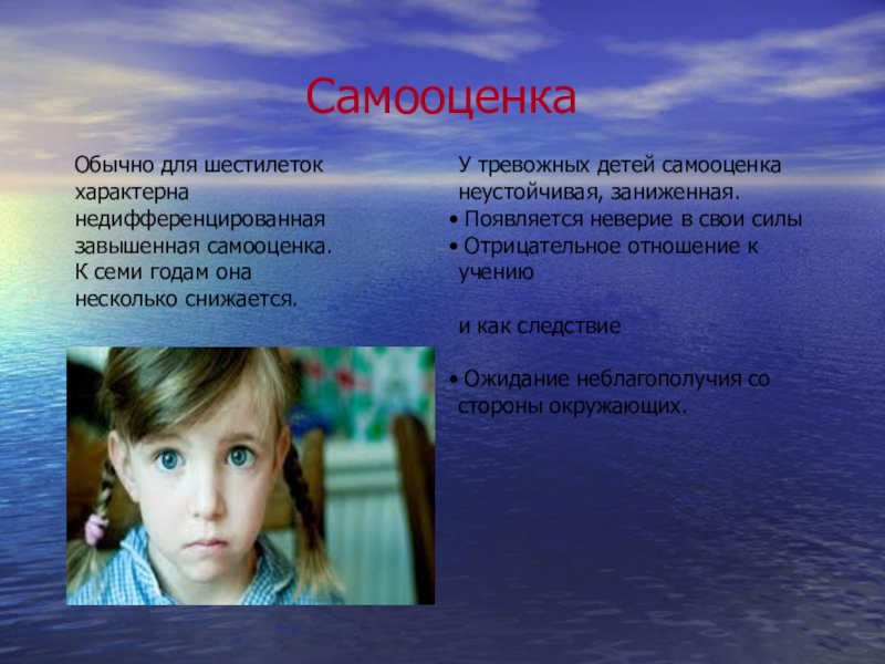 У тревожных детей самооценка неустойчивая, заниженная.