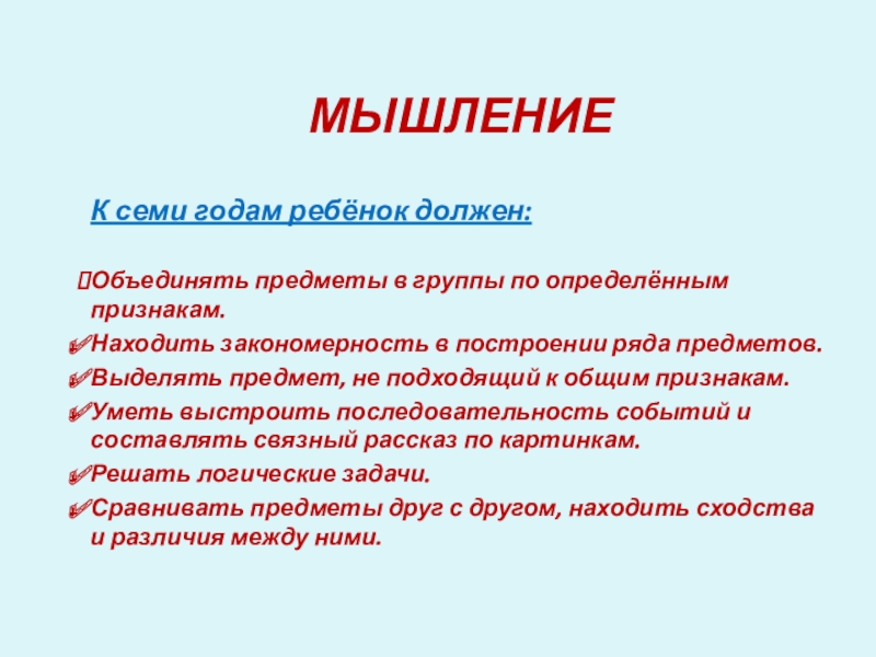 К семи годам ребёнок должен: