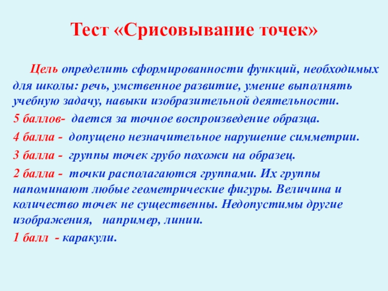 Слайд 12Тест «Срисовывание точек»