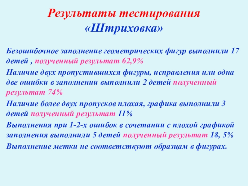 Результаты тестирования «Штриховка»