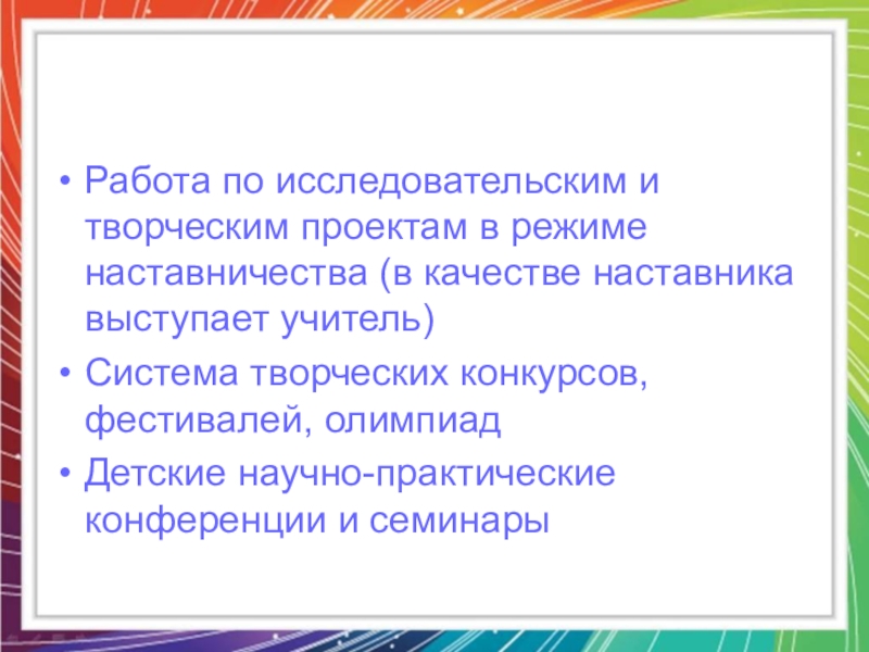 Работа по исследовательским и творческим проектам в режиме наставничества (в качестве
