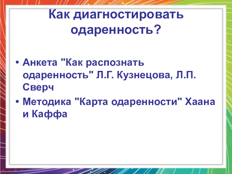 Анкета "Как распознать одаренность" Л.Г. Кузнецова, Л.П. Сверч