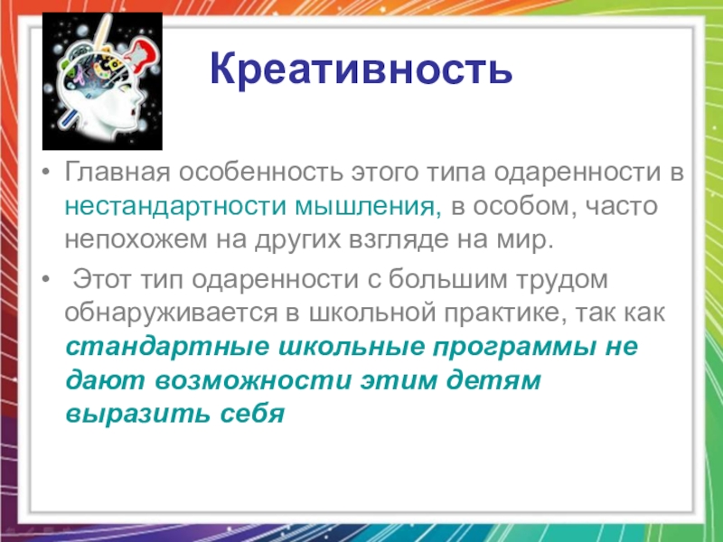 Главная особенность этого типа одаренности в нестандартности мышления, в особом,