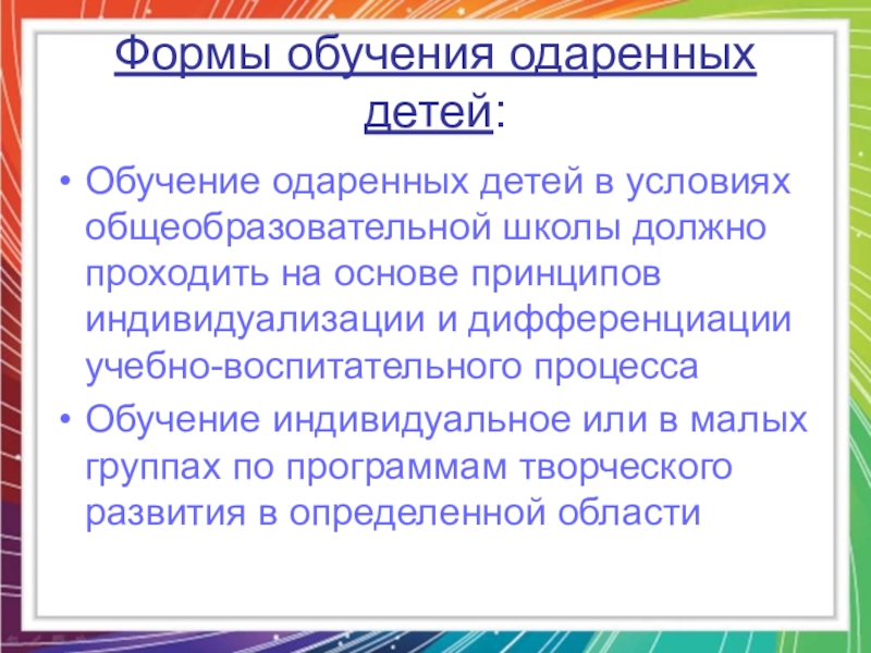 Обучение одаренных детей в условиях общеобразовательной школы должно