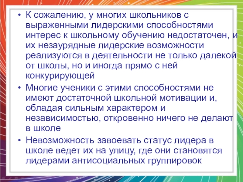 К сожалению, у многих школьников с выраженными лидерскими способностями интерес к
