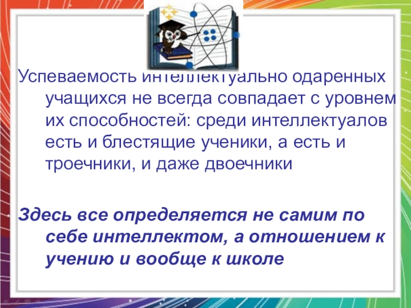 Успеваемость интеллектуально одаренных учащихся не всегда совпадает с уровнем их способностей: