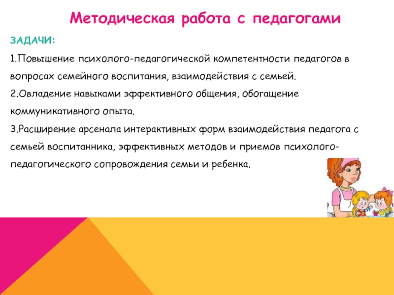 1.Повышение психолого-педагогической компетентности педагогов в вопросах семейного воспитания,