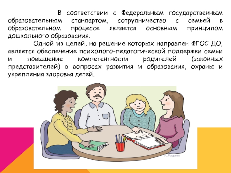 стандартом, сотрудничество с семьей в образовательном процессе является основным принципом дошкольного образования.