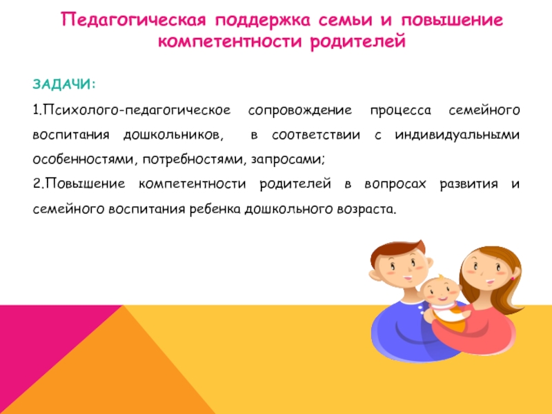 Педагогическая поддержка семьи и повышение компетентности родителей;