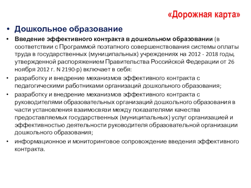 Введение эффективного контракта в дошкольном образовании (в соответствии с Программой